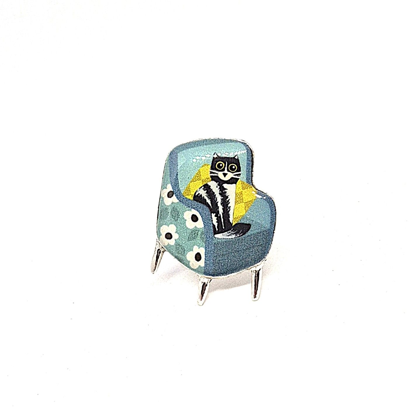 Bague réglable en bronze argenté représentant un chat sur le sofa, tous les détails sont peints à la main.
