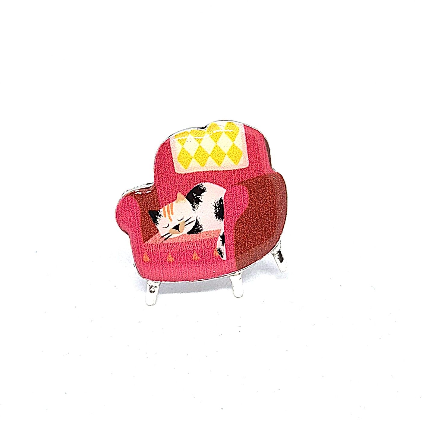 Bague réglable en bronze argenté représentant un chat sur le sofa, tous les détails sont peints à la main.