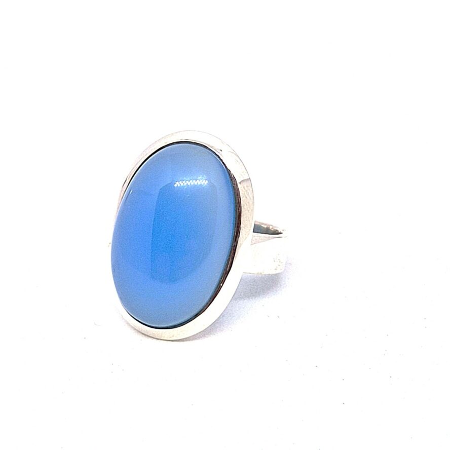 Bague argent réglable du 56 à la taille 62. L’anneau fait 5 mm sur 1 mm pour supporter les ajustements. Le cabochon ovale est mis en valeur par un sertissage simple .