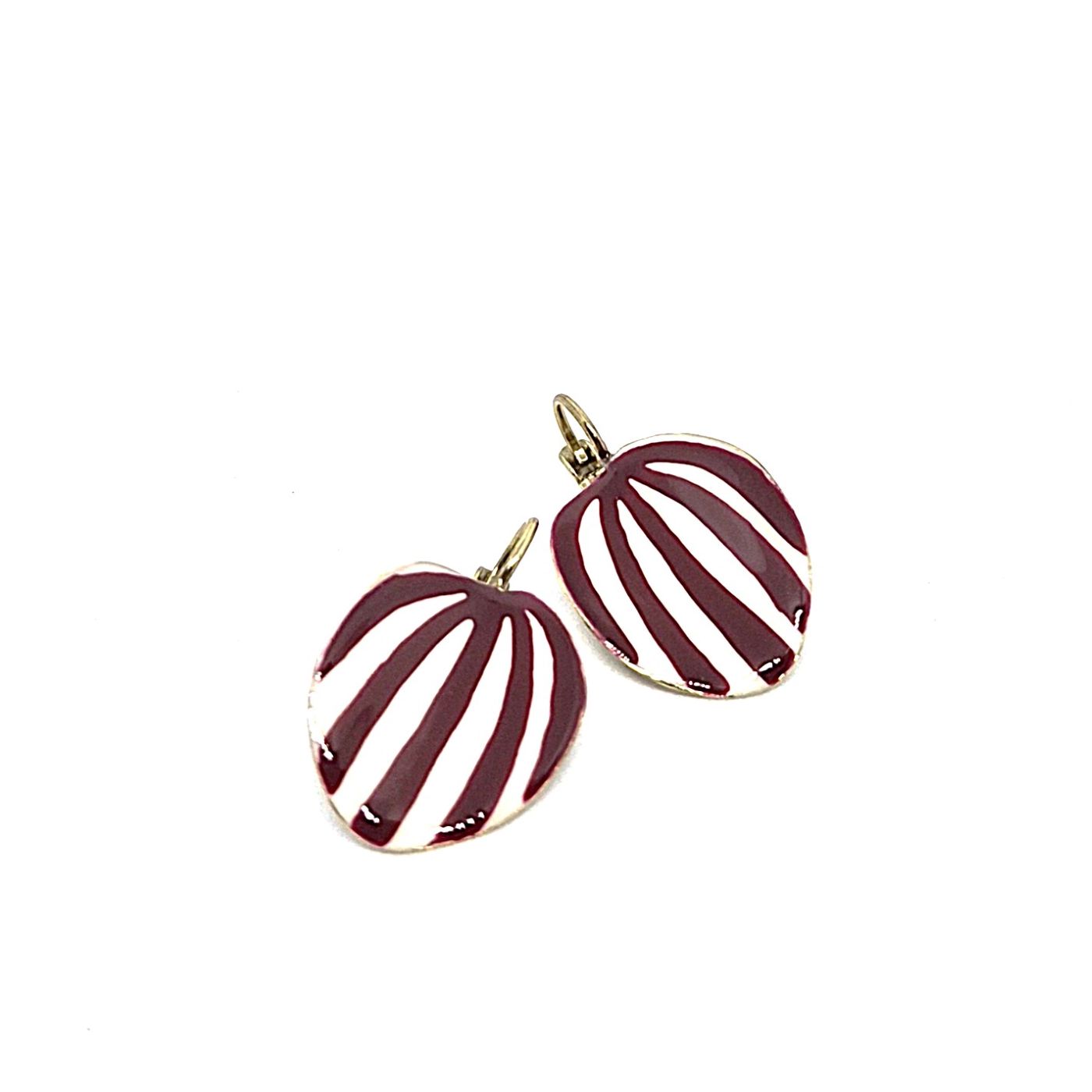 Dormeuses en bronze de forme ovale , légèrement incurvées. Tous les éléments sont peints à la main. La base de couleur crème fait ressortir le motifs harmonieux.