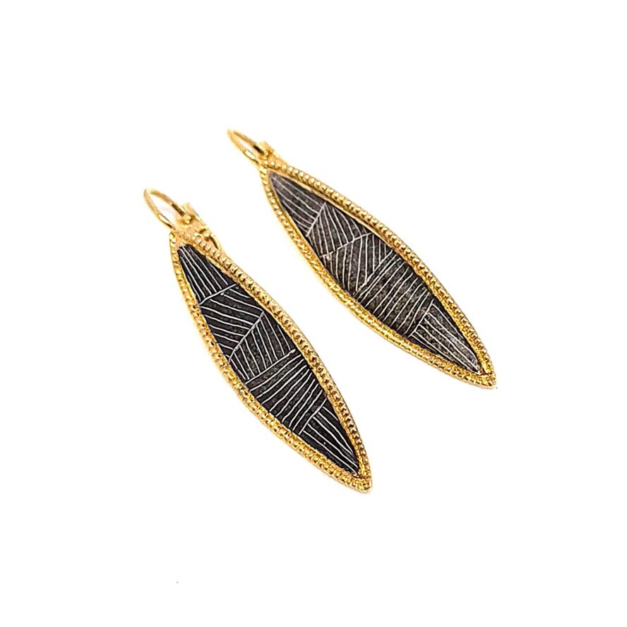 Dormeuses fines et allongées en bronze doré à l’or fin. La partie centrale est peinte à la main , dans les tons de noir et blanc