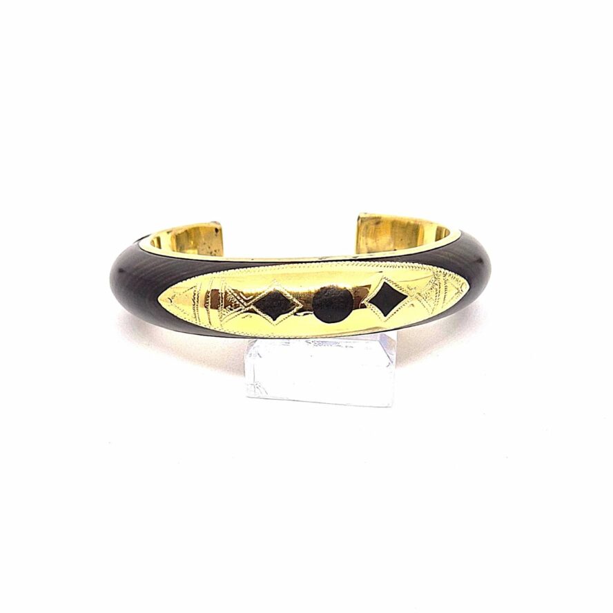 Bracelet rigide et bombé en laiton et ébène. De forme ovale pour bien s’adapter au poignet. Le laiton met en valeur l’ébène. Bracelet chic et intemporel.