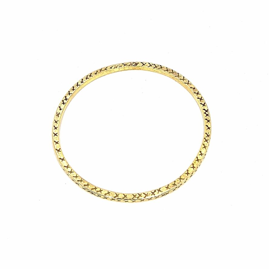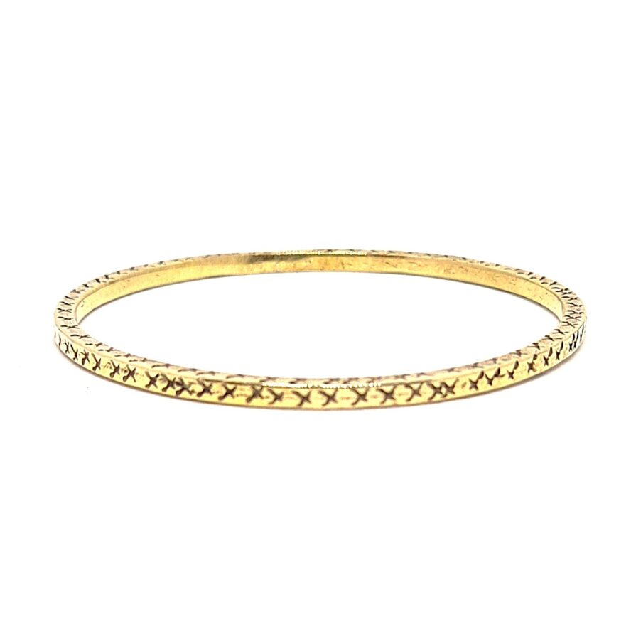 Jonc en laiton de face carré. Des motifs sont présents sur toutes les surfaces. Bracelets qui peut se porter seul, ou facile à assortir.