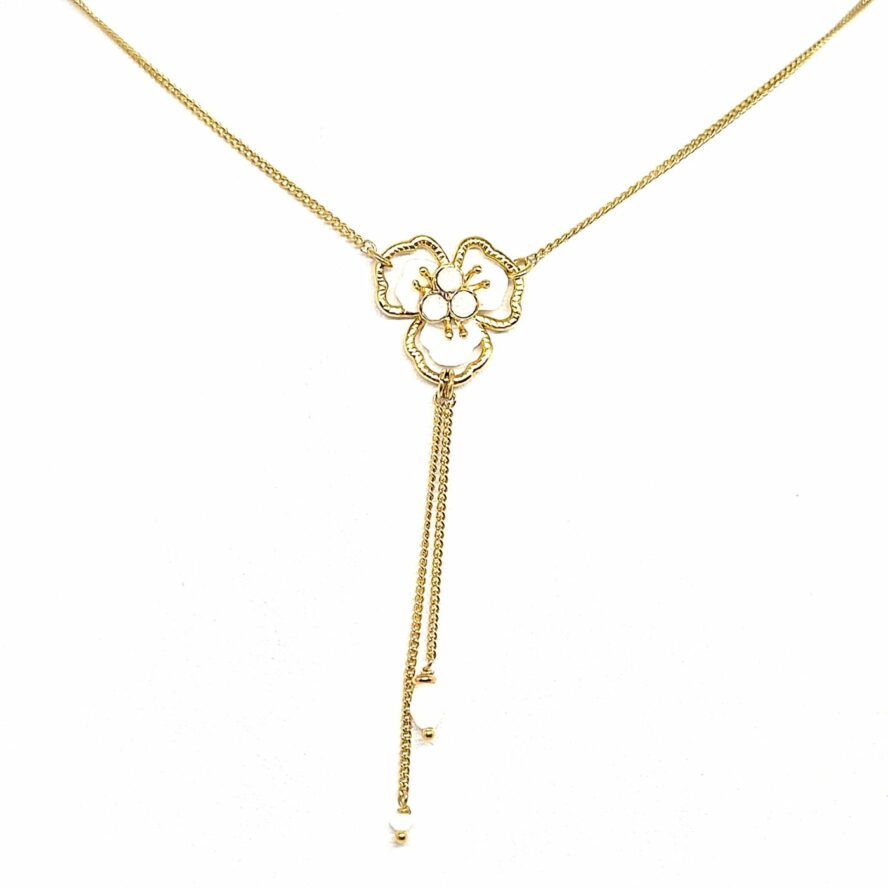 collier 40 cm + 3 cm de rallonge fleur 2 cm+ 5 cm de pampilles