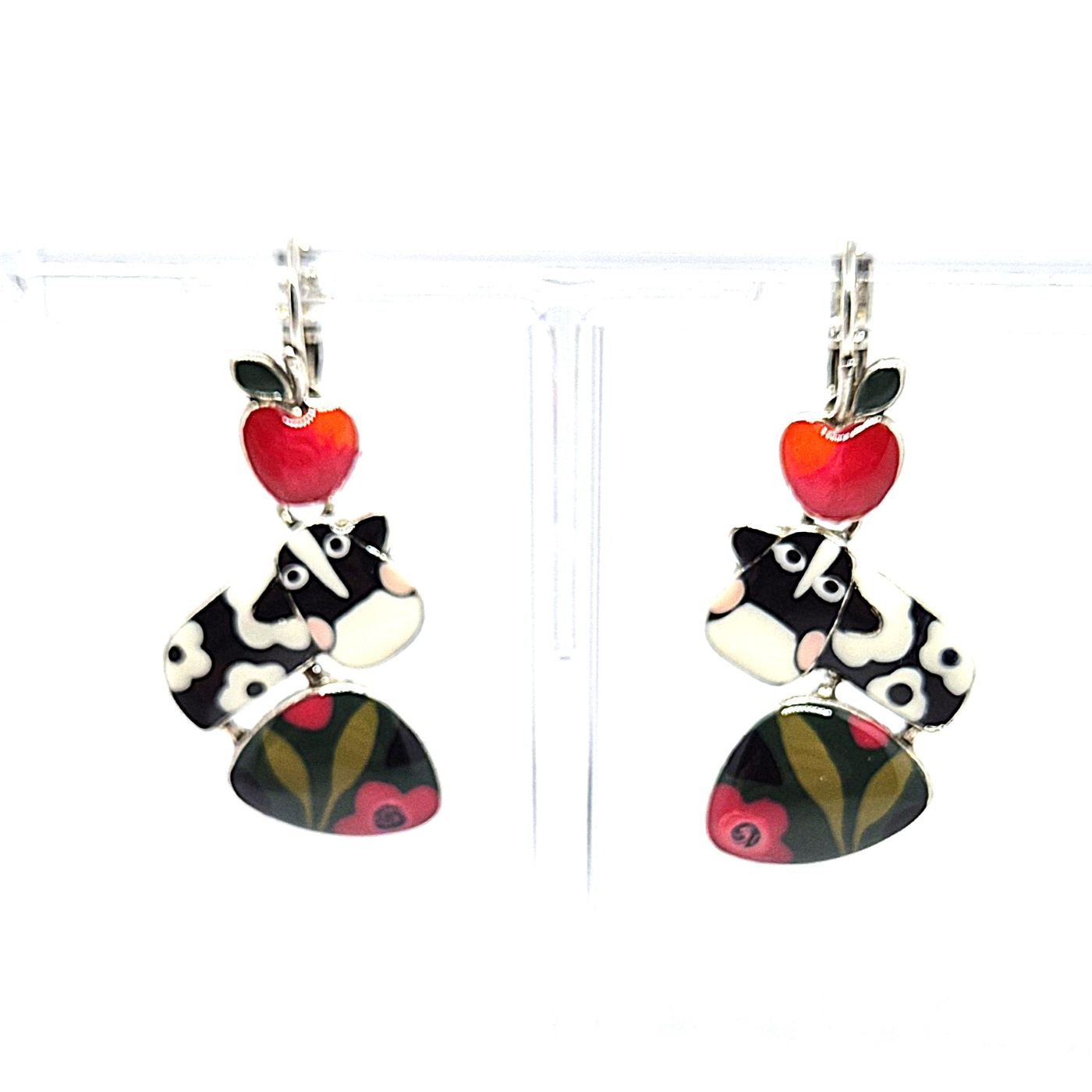 Dormeuses en bronze argenté représentant la vache pâquerette . Les détails sont peints à la main avec des couleurs vives. Boucles légères et mobiles.