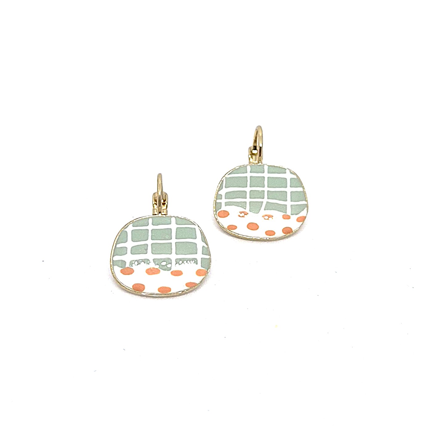 Dormeuses en laiton doré peintes à la main, dans des teintes douces et bucoliques.