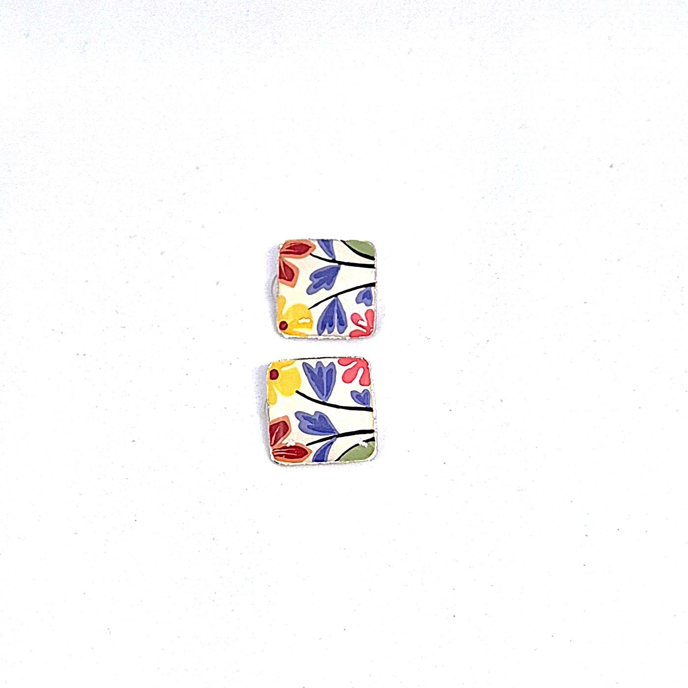 Clips en bronze argenté. Les détails des motifs floraux sont peints à la main. Boucles au bon maintient et aux couleurs multiples.
